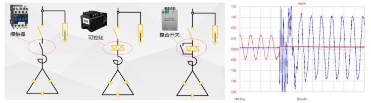 En raison du fait que la commutation des condensateurs parallèles dans les temps antérieurs a été réalisée par des contacteurs, qui ont un temps de réponse à l'échelle de deuxième niveau, son inconvénient fatal était le grand courant d'entrée pendant la commutation. Dans les cas graves, il pourrait atteindre 50 - 100 fois le courant nominal du condensateur de compensation, entraînant une lumière d'arc significative et causant des dommages aux condensateurs et aux contacts. Sur la base du fonctionnement réel des charges sur site, des alternatives aux contacteurs tels que les commutateurs synchrones, les commutateurs hybrides et les commutateurs à thyristor ont progressivement émergé sur le marché. Ces alternatives ont considérablement amélioré la commutation à zéro tension et l'interruption à zéro courant, réduisant considérablement les dommages causés par la commutation du courant d'ondule.