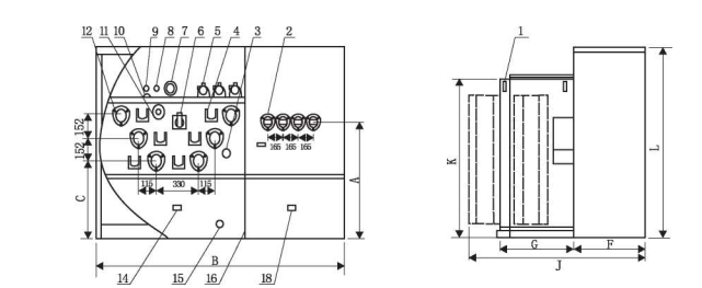 Le transformateur combiné produit par notre usine est un transformateur de distribution triphasé entièrement isolé, entièrement scellé et étanche pour l'installation sur banc, qui convient à Système de distribution à trois phases avec un Voltage nominal de à 10K.V. C Conformité aux exigences des normes nationales correspondantes