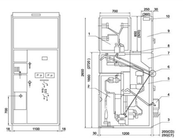 Selon la disposition de l'armoire, la salle de relais est équipée d'un relais, la porte peut être équipée de relais de signal, d'instrument d'indicateur, de lumière de signal, d'installation de commutateur de transfert et de chambre d'opération, l'arrière est la salle de barre de bus, la partie inférieure est la salle de câble, l'utilisateur peut facilement filer.À l'avant se trouve la salle de disjoncteur, ce qui facilite l'entretien du commutateur. Le mécanisme interne de l'armoire est montré dans la figure 1, la figure 2 et le manuel du produit.