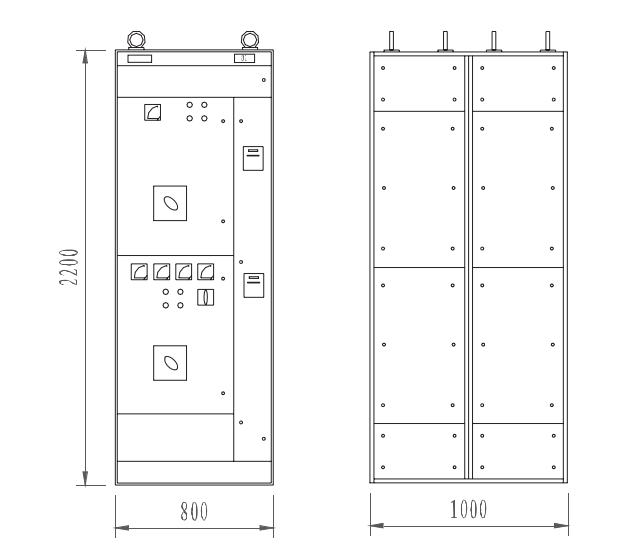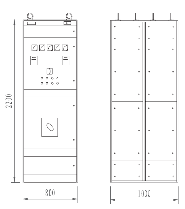 4. 1 La hauteur totale du produit est de 2200mm, le haut est la barre omnibus, la partie médiane est la hauteur d'installation des composants électriques, la plus élevée est de 1800mm et la partie inférieure du schéma de fixation doit être soustraite de 200mm, le maximum est de 1600mm (sauf pour le schéma donné 1800mm).