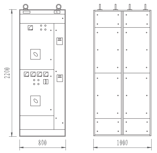 4. La prDeondeur des 3 armoires est de 800mm, mais lorsque les lignes supérieure et sortante sont toutes de 1000mm, à l'exception des armoires entrantes.